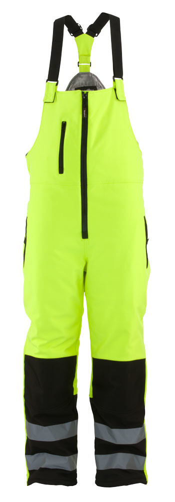 The HiVis Insulated Softshell Bib features over 400g of insulating power to keep you warm and safe. 1 Chest and 2 front zipper pockets to store your necessities. These bibs are super durable and keep you moving with heel reinforcement patches, scuff-resistant knee patches and Y-back heavy-duty suspenders. 2" Silver reflective tapes provides extra visibility.