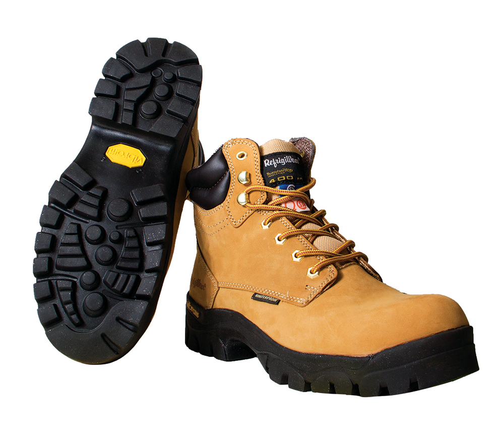 Our Resistor Boot is made with 200 g Thinsulate insulation, and a 9" industrial leather upper. This waterproof boot is a pull-on style with velcro for easy on and off. It comes with a composite toe, Vibram®Montana outsole with IceTrek.®