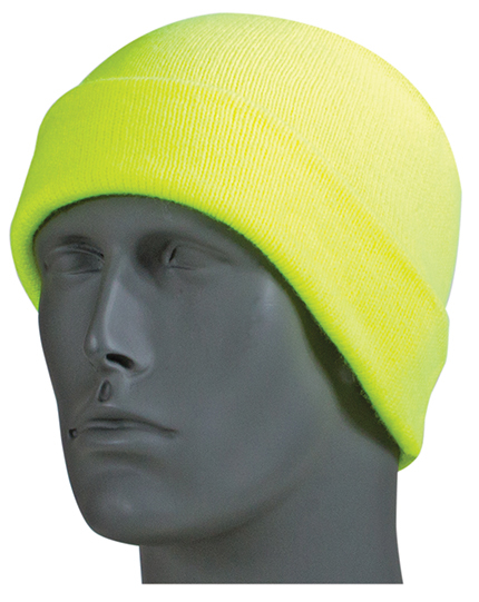 The acrylic knit cap come in HiVis™ Lime or Orange.